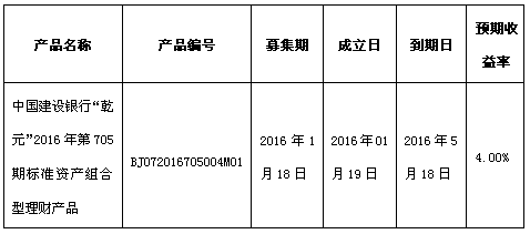 根据与投资者的约定,现将中国建设银行北京市分行理财产品成立情况信息进行披露: