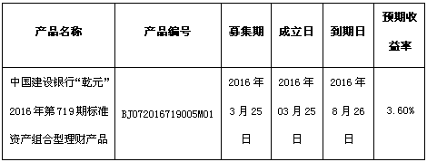 中国建设银行“乾元”2016年第719期标准资产组合型理财产品成立公告