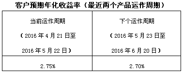中国建设银行对本产品下个运作周期的客户预期年化收益率进行调整,详见下表: