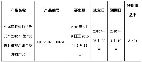 根据与投资者的约定,现将中国建设银行北京市分行理财产品成立情况信息进行披露: