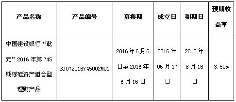 根据与投资者的约定,现将中国建设银行北京市分行理财产品成立情况信息进行披露: