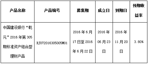 中国建设银行“乾元”2016年第305期标准资产组合型理财产品成立公告