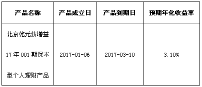 根据与投资者的约定,现将理财产品成立情况信息进行披露: