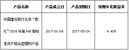 关于中国建设银行北京“乾元”2016年第646期标准资产组合型理财产品成立的公告