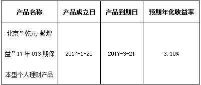 根据与投资者的约定,现将理财产品成立情况信息进行披露: