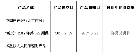 根据与投资者的约定,现将理财产品成立情况信息进行披露: