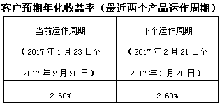 中国建设银行对本产品下个运作周期的客户预期年化收益率不作调整,详见下表: