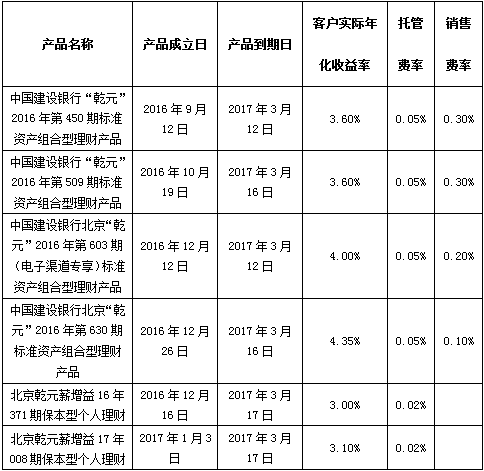根据与投资者的约定,中国建设银行发行的下列理财产品已经到期并完成资金兑付,现将有关情况公告如下: