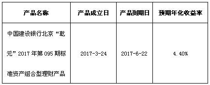 关于中国建设银行北京“乾元”2017年第095期标准资产组合型理财产品成立的公告