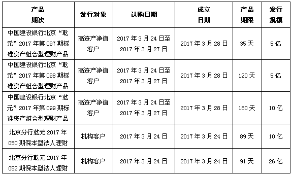 中国建设银行北京市分行定于2017年3月24日发行理财产品,现将相关发行情况公告如下: