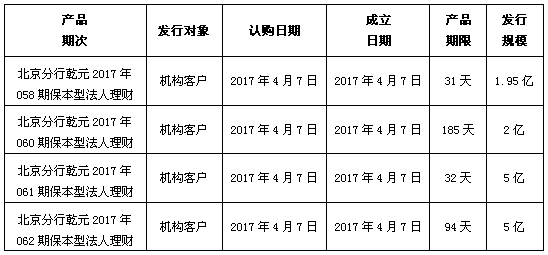 中国建设银行北京市分行定于2017年4月7发行理财产品,现将相关发行情况公告如下: