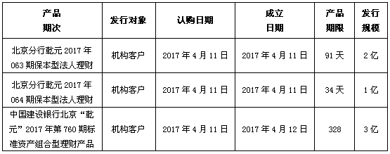 中国建设银行北京市分行定于2017年4月11日发行理财产品,现将相关发行情况公告如下: