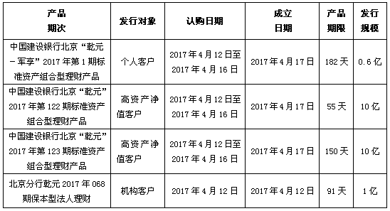 中国建设银行北京市分行定于2017年4月12日发行理财产品,现将相关发行情况公告如下: