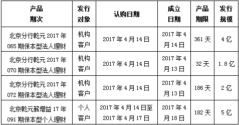 中国建设银行北京市分行定于2017年4月14日发行理财产品,现将相关发行情况公告如下: