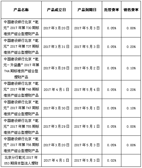 中国建设银行对公类理财产品终止及清算公告2017年5月5日