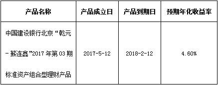 关于中国建设银行北京“乾元-薪连鑫”2017年第03期标准资产组合型理财产品成立的公告