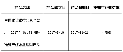 关于中国建设银行北京“乾元”2017年第171期标准资产组合型理财产品成立的公告