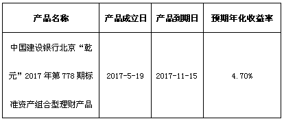 关于中国建设银行北京“乾元”2017年第778期标准资产组合型理财产品成立的公告