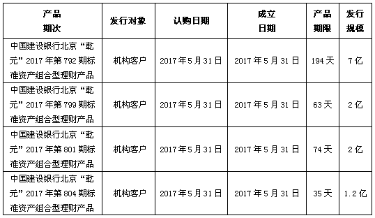 中国建设银行北京市分行定于2017年5月27日发行理财产品,现将相关发行情况公告如下: