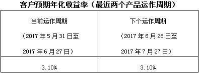 下个运作周期客户预期年化收益率于2017年6月28日(含)开始执行。