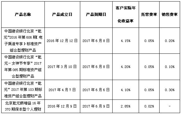 根据与投资者的约定,中国建设银行发行的下列理财产品已经到期并完成资金兑付,现将有关情况公告如下: