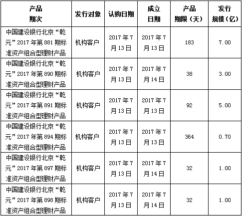 中国建设银行北京市分行定于2017年7月13日发行理财产品,现将相关发行情况公告如下:
