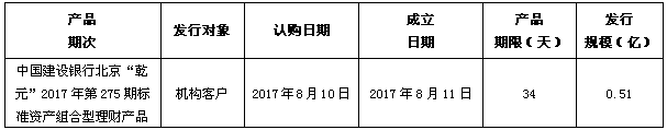 中国建设银行北京市分行定于2017年8月10日发行理财产品,现将相关发行情况公告如下: