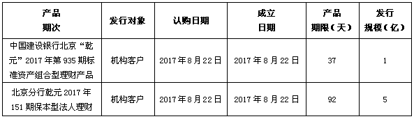 中国建设银行北京市分行定于2017年8月22日发行理财产品,现将相关发行情况公告如下: