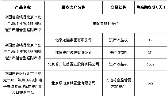 依照《中国银监会关于规范商业银行理财业务投资运作有关问题的通知》(银监发〔2013〕8号)要求,现对本期产品投资非标准化债权资产清单披露如下: