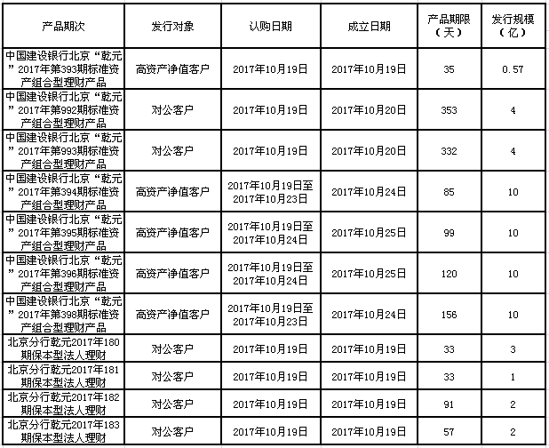 中国建设银行北京市分行定于2017年10月19日发行理财产品,现将相关发行情况公告如下: