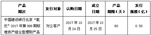 中国建设银行北京市分行定于2017年10月24日发行理财产品,现将相关发行情况公告如下: