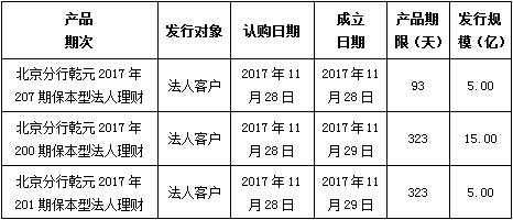 中国建设银行北京市分行定于2017年11月28日发行理财产品,现将相关发行情况公告如下: