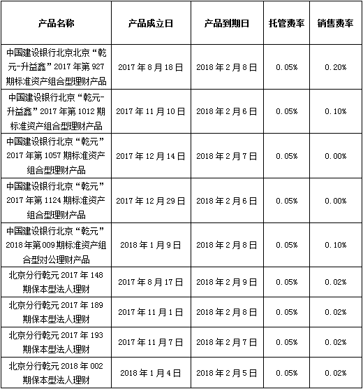 根据与投资者的约定,中国建设银行发行的下列理财产品已经到期并完成资金兑付,现将有关情况公告如下: