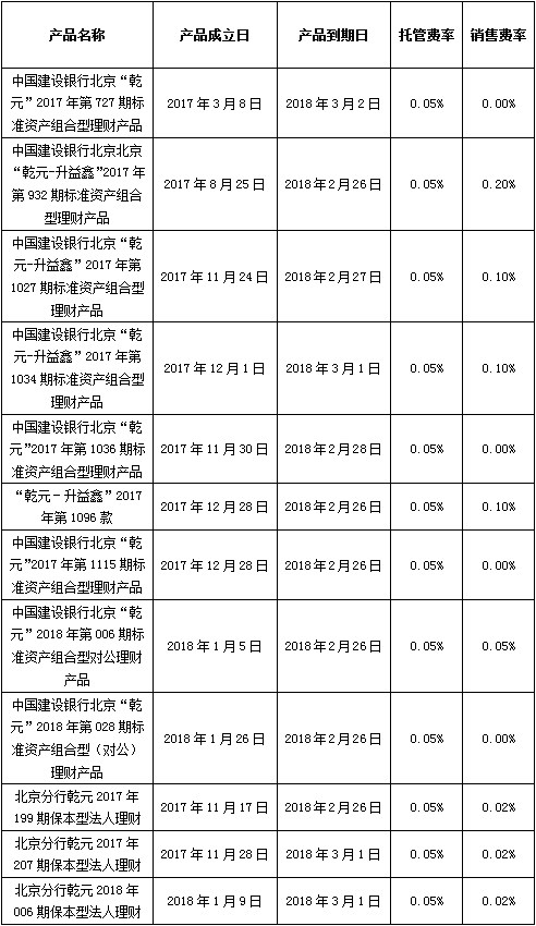 根据与投资者的约定,中国建设银行发行的下列理财产品已经到期并完成资金兑付,现将有关情况公告如下: