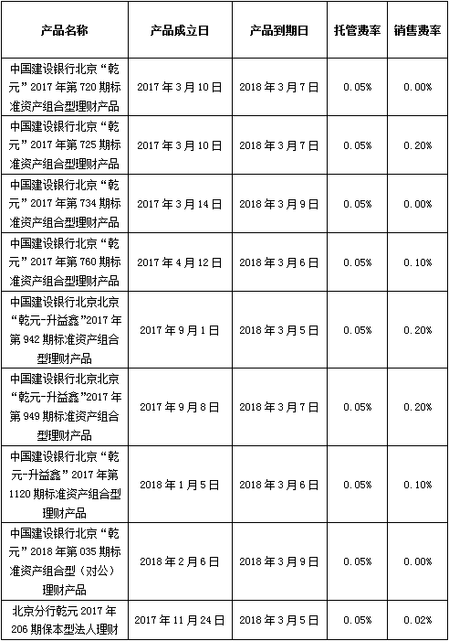 根据与投资者的约定,中国建设银行发行的下列理财产品已经到期并完成资金兑付,现将有关情况公告如下: