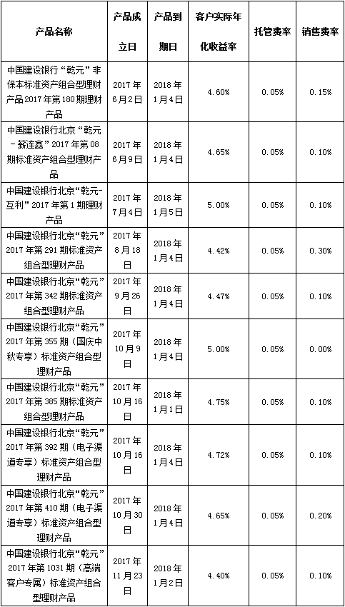 根据与投资者的约定,中国建设银行发行的下列理财产品已经到期并完成资金兑付,现将有关情况公告如下: