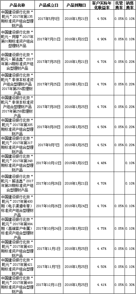 根据与投资者的约定,中国建设银行发行的下列理财产品已经到期并完成资金兑付,现将有关情况公告如下:
