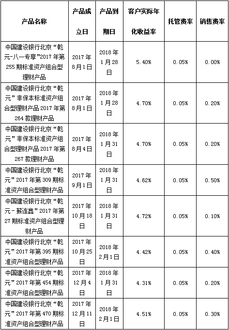 根据与投资者的约定,中国建设银行发行的下列理财产品已经到期并完成资金兑付,现将有关情况公告如下: