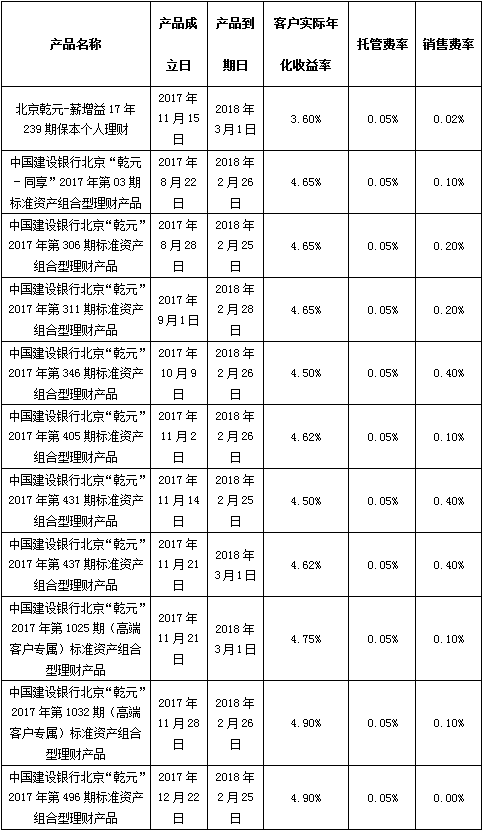 根据与投资者的约定,中国建设银行发行的下列理财产品已经到期并完成资金兑付,现将有关情况公告如下:
