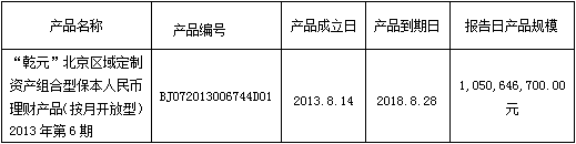 “乾元”北京区域定制资产组合型保本人民币理财产品(按月开放型)2013年第6期月度投资管理报告