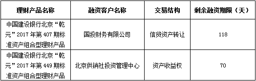 中国建设银行北京分行于2018年3月16日共2只标准资产组合型理财产品进行了非标准化债权资产变更,根据与投资者的约定,现将理财产品存续期情况信息进行披露: