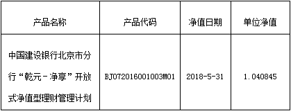 中国建设银行北京市分行“乾元-净享”开放式净值型理财管理计划净值公布如下: