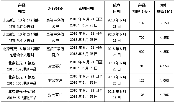 建行北京市分行理财产品发行公告2018年6月21日