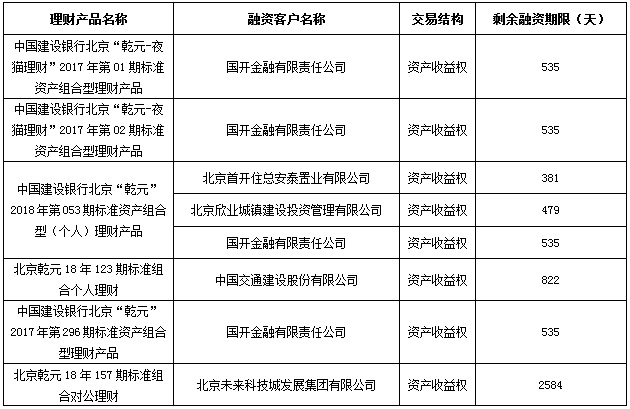 中国建设银行北京分行于2018年7月17日共6只标准资产组合型理财产品进行了非标准化债权资产变更,根据与投资者的约定,现将理财产品存续期情况信息进行披露: