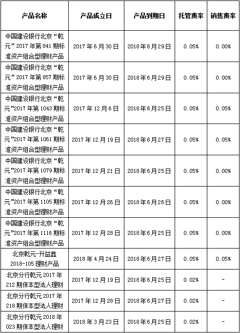 中国建设银行对公类理财产品终止及清算公告2018年6月29日