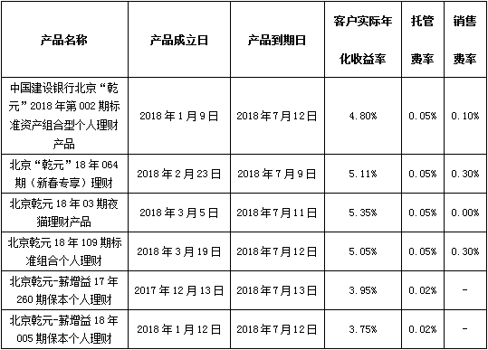 中国建设银行个人类理财产品终止及清算公告2018年7月13日