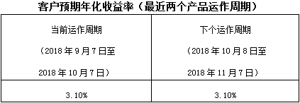 中国建设银行拟对本产品的客户预期年化收益率不进行调整,详见下表: