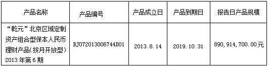 “乾元”北京区域定制资产组合型保本人民币理财产品(按月开放型)2013年第6期月度投资管理报告