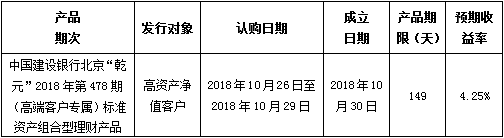中国建设银行北京市分行定于2018年10月26日发行理财产品,现将相关发行情况公告如下: