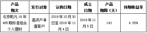 中国建设银行北京市分行定于2018年10月30日发行理财产品,现将相关发行情况公告如下: